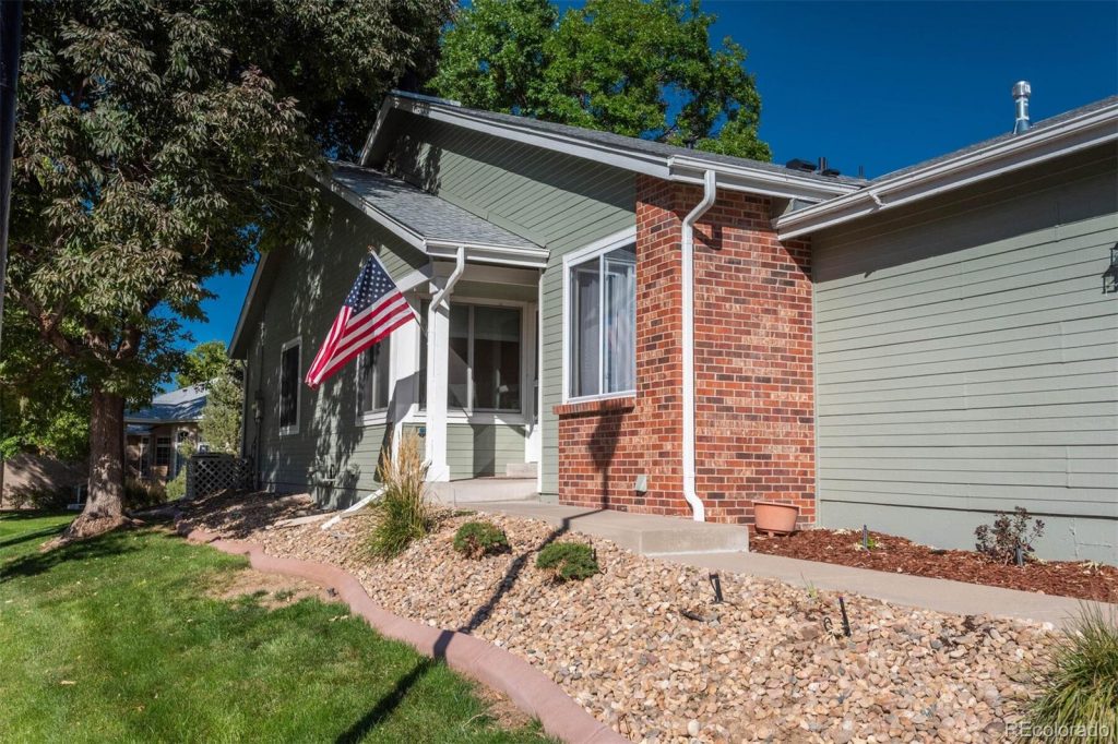 Welcome Home to this quaint end unit in Gleneagles Village. This newly updated unit features 2 bed, 2 baths, 2 car attached garage and 1, 213 finished square feet. Upon entering you will be greeted with vaulted ceilings and gorgeous oak hardwood floors that flow through the main living spaces. The living room and dining area are separated by a cozy gas fireplace and the floorplan seamlessly guides you into a light and bright kitchen complete with stainless steel appliances and sliding glass doors that lead you to a lovely, patio overlooking open space. Down the hall you will find the laundry closet, primary bedroom, and secondary bedroom. The primary bedroom consists of a full en-suite bathroom and spacious walk-in closet. The secondary bedroom is the perfect place for an office or guest bedroom. The spacious two garage is finished with epoxy flooring and includes ample storage space with a number of built-ins. This premier location offers easy access to C-470, shopping, dining and plenty of outdoor activities.